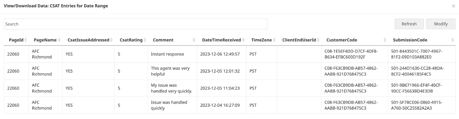 * Chat Page → Page Name and ID that end user submitted CSAT Feedback from