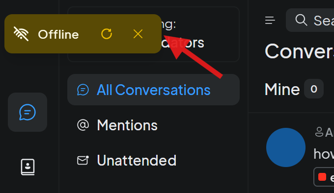 This notification alerts agents that there is a temporary disconnect from the web, and a page refresh is needed to see new messages sent during the downtime. Instances when you may see this message include: