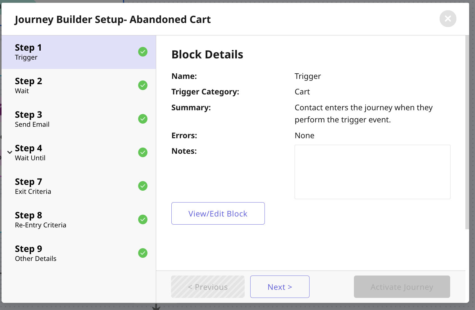 To configure each step to your campaign requirement, click *View/Edit Block*.&#x20;