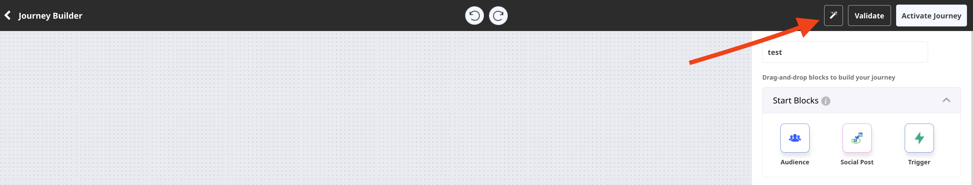 Access the Wizard easily through the wand icon in the journey builder window – your shortcut to creating sophisticated, targeted marketing journeys with minimal complexity.&#x20;