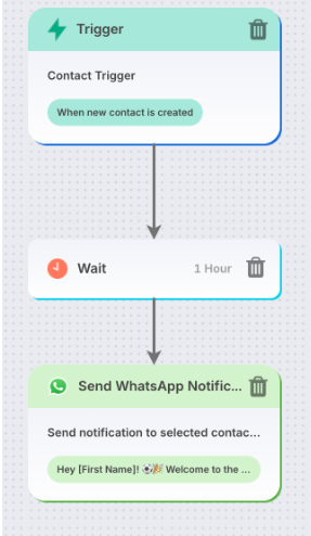 2. At the defined step, a personalized WhatsApp message, such as a welcome or introduction message, is automatically sent to the user's WhatsApp number. This ensures users are instantly engaged and receive timely communication without manual intervention.