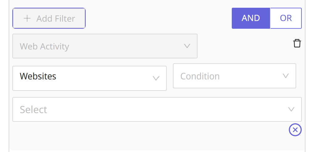 In Web Activity, you have two sub-filters (websites and event date). These filters are based on the contact's web activity. For example: