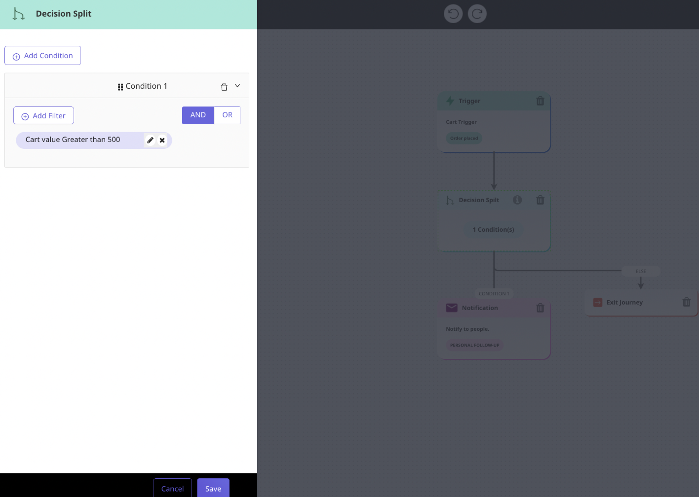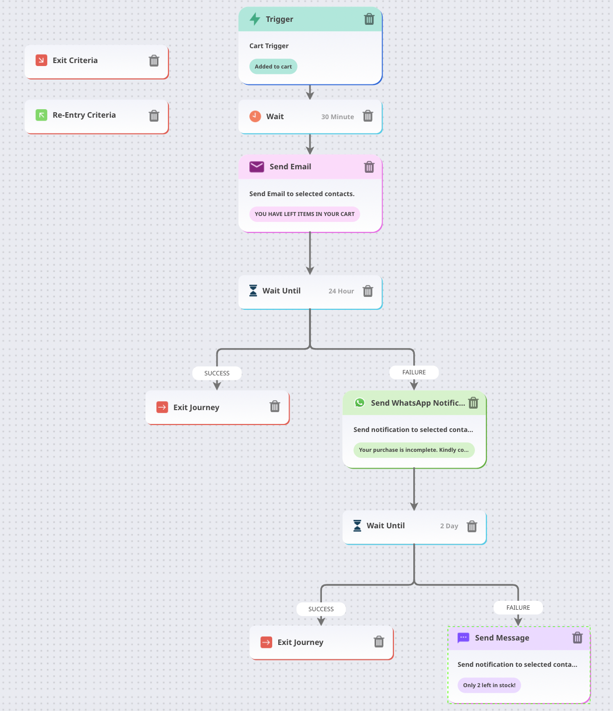 If a customer leaves items in their cart for 30 minutes, send an email reminder.